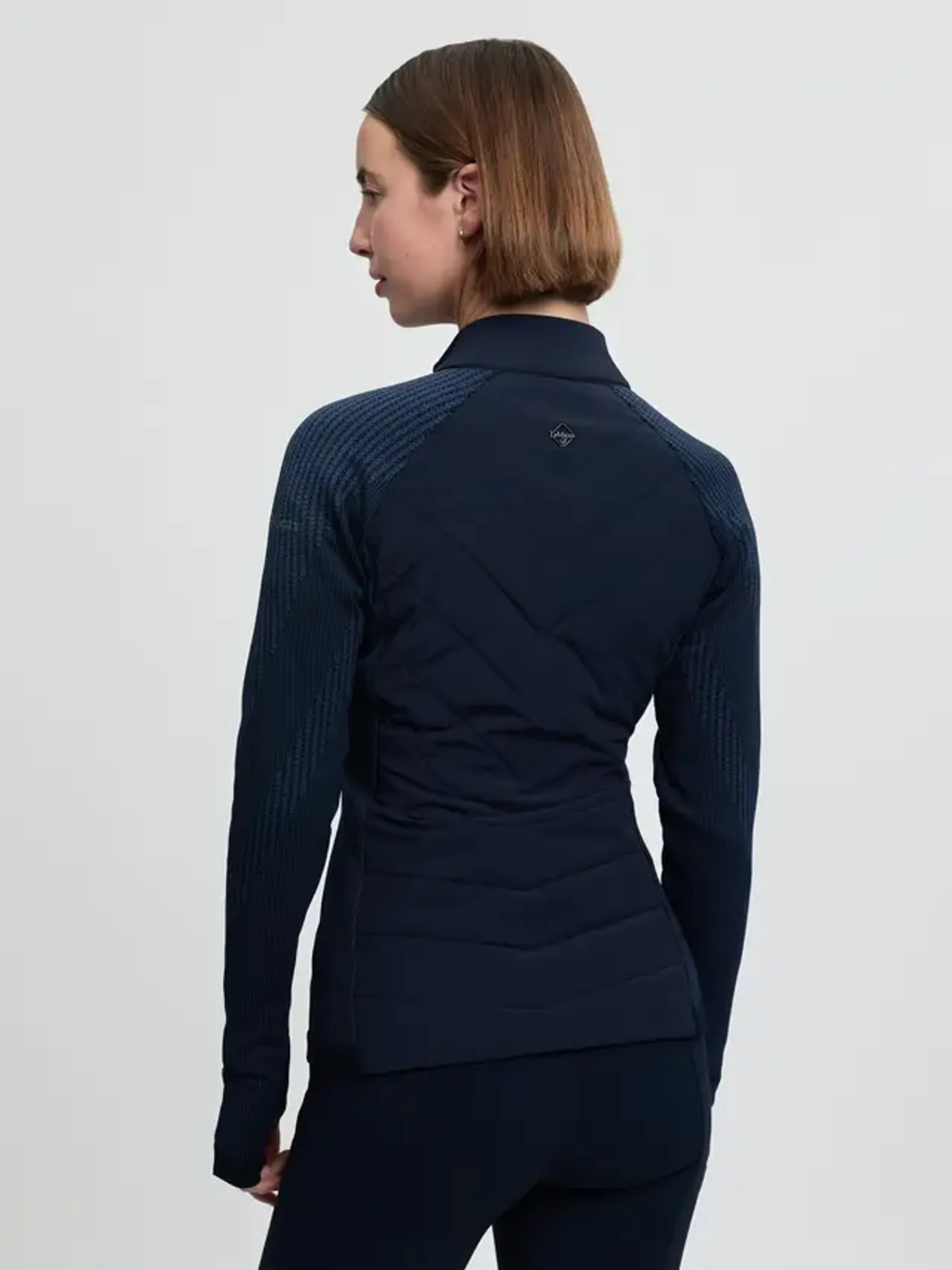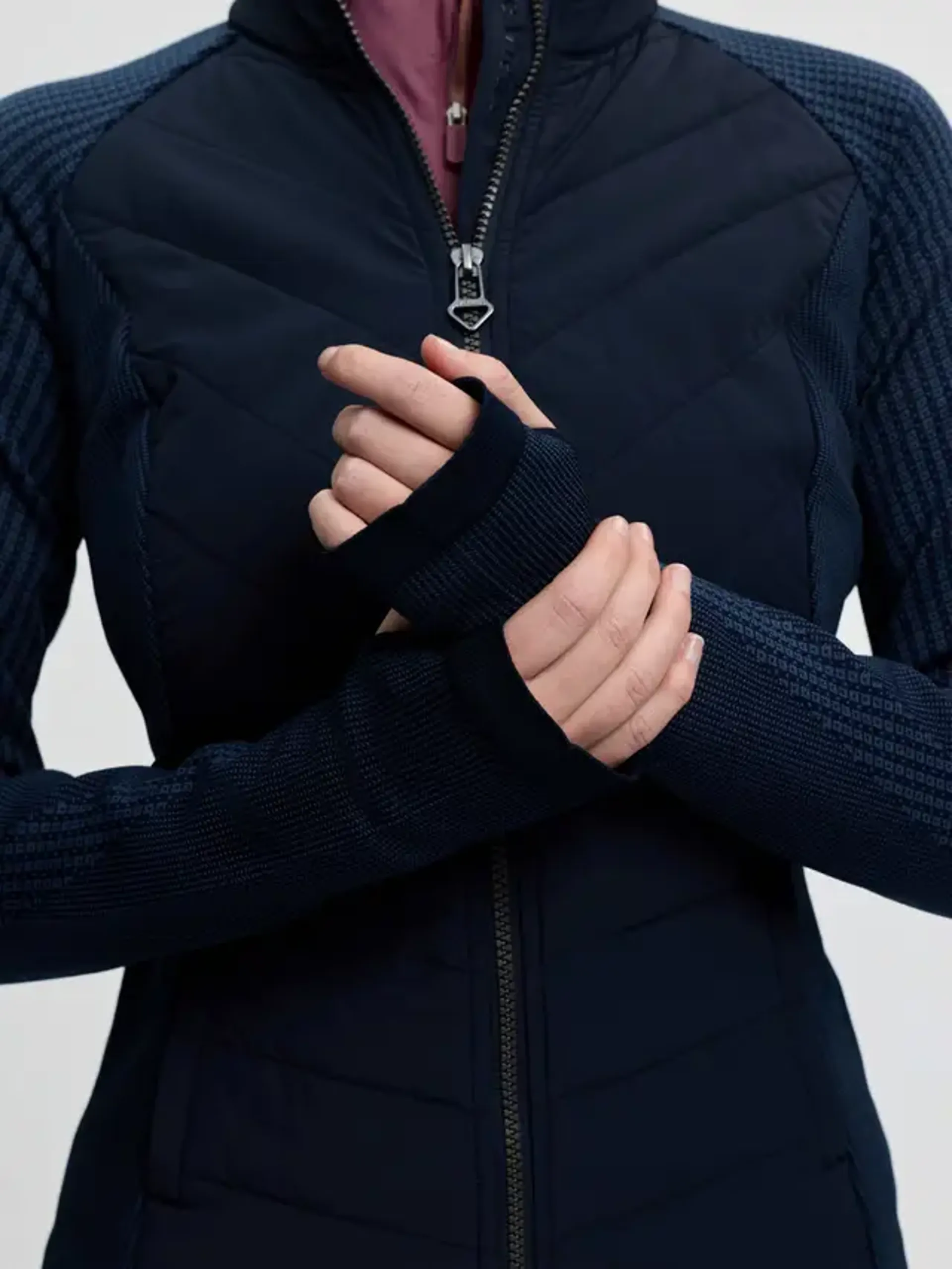 Up the ante in this lightweight classic hybrid jacket. Sculpted, form-fitting and flattering, it's the ideal mid-layer to take you from the stable to the ski slope, and everywhere else in between.