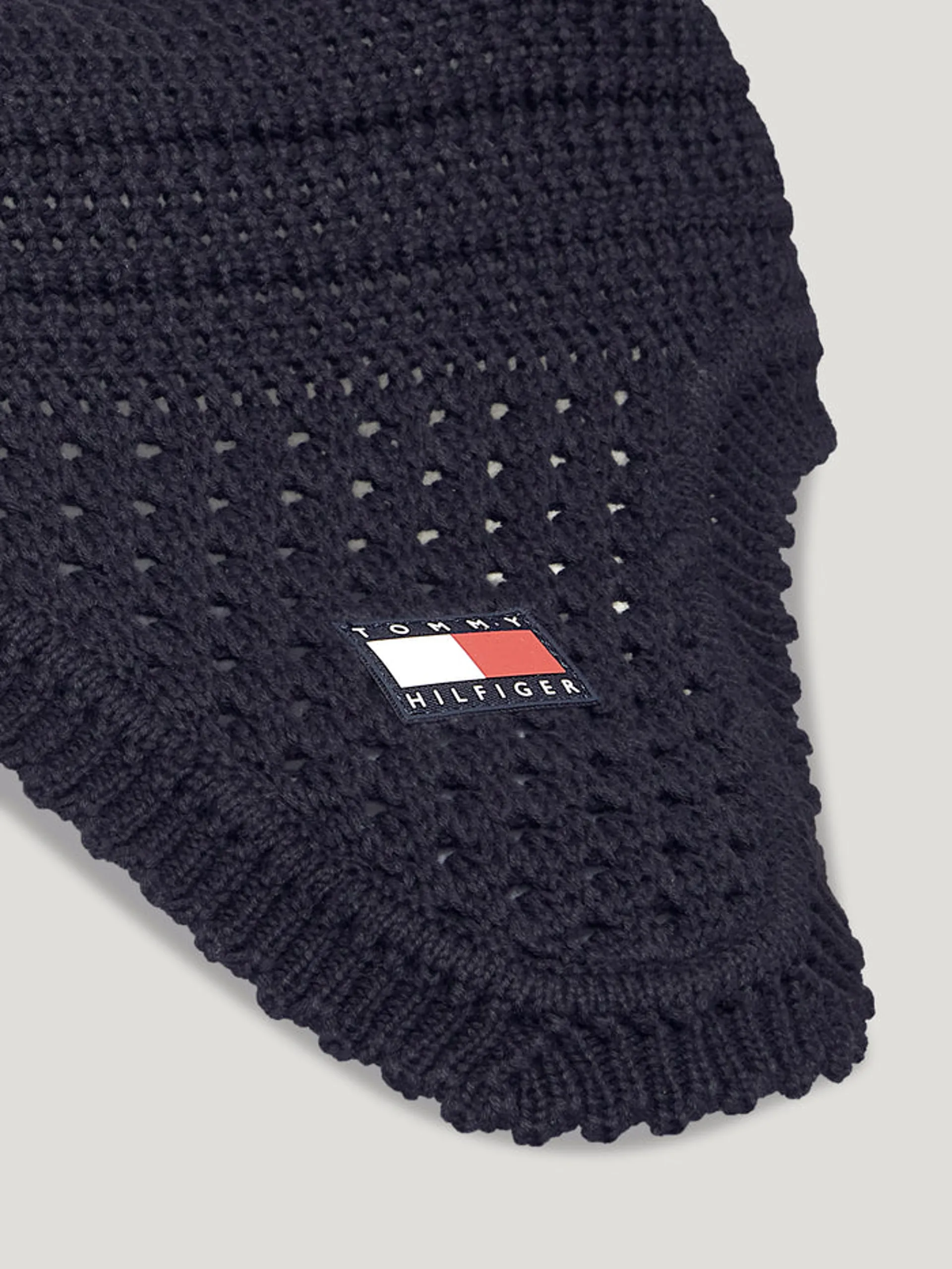 • Crochet fly hood with logo patch