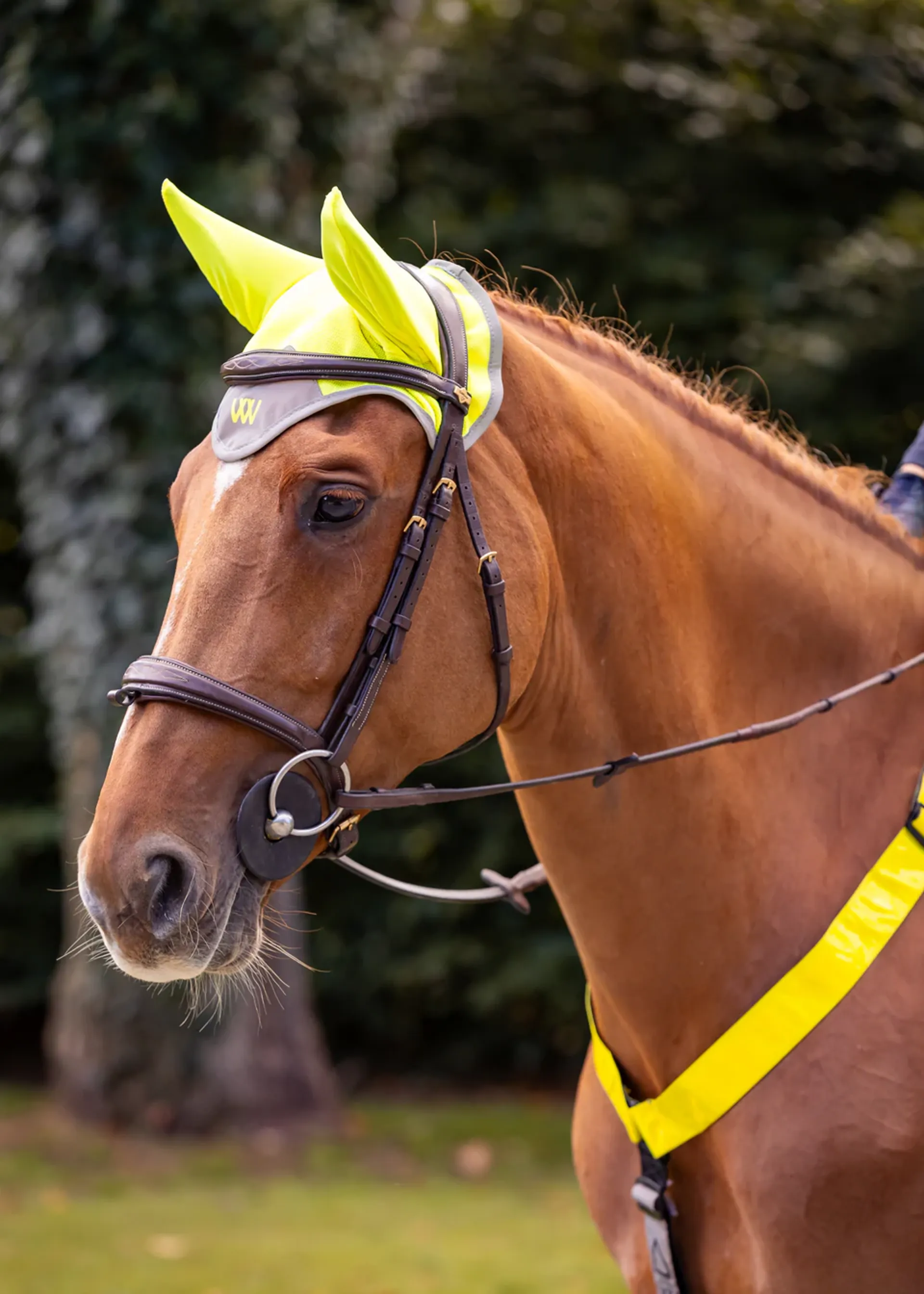 Woof Wear’s Hi Vis Yellow Fly Veil features dual-layer safety with high visibility colour and 360° reflective binding for added visibility in low light. Designed for comfort and performance, Woof Wear Fly Veils use a game-changing design that improves comfort for your horse and gives riders peace of mind. Crafted from soft, technical mesh, the Hi Vis Fly Veil keeps your horse’s head cool and comfortable. The streamlined design prevents pressure points, while the generous cut behind the ears ensures a secure fit under both traditional and anatomically curved bridles. Part of the Woof Wear Hi Vis Collection, this fly veil in bright yellow offers maximum visibility without compromising comfort.