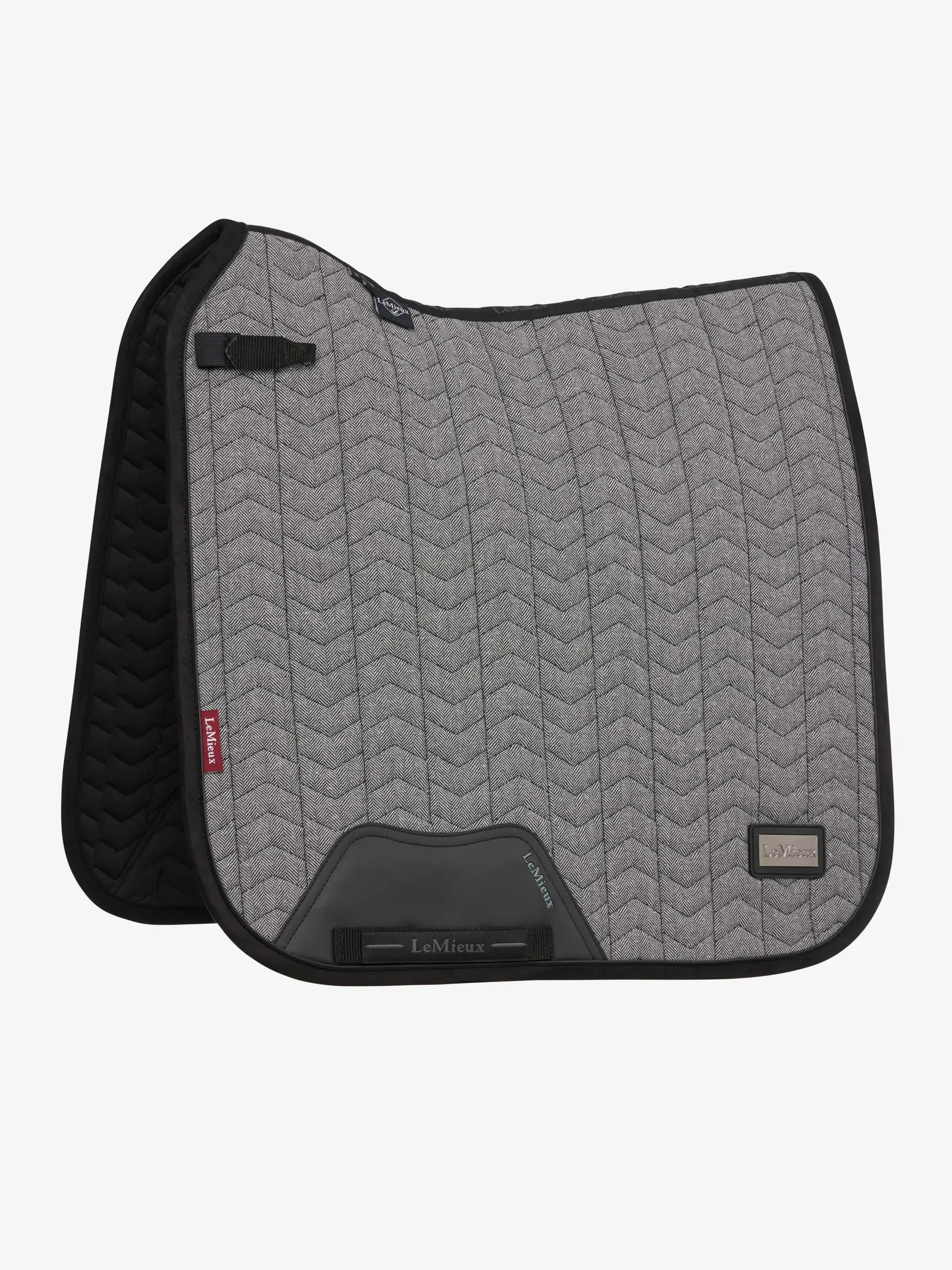 Up your game with this luxe saddle pad from the Aspen Collection. Crafted in a premium luxury houndstooth check fabric, it has a unique houndstooth quilting pattern that's sure to stand out from the crowd. Patent PU piping catches the light, and a gunmetal LeMieux badge matches back to the rest of the Aspen Collection.